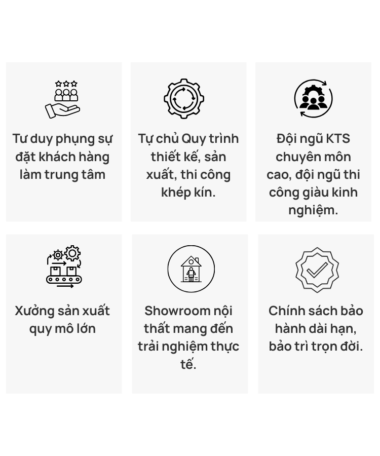 Chúng tôi không chỉ dừng lại ở việc hoàn thiện một không gian đẹp, mà còn theo đuổi một quy trình thi công có trách nhiệm, nơi chất lượng, tiến độ và sự an tâm của gia chủ luôn được đặt lên hàng đầu.
