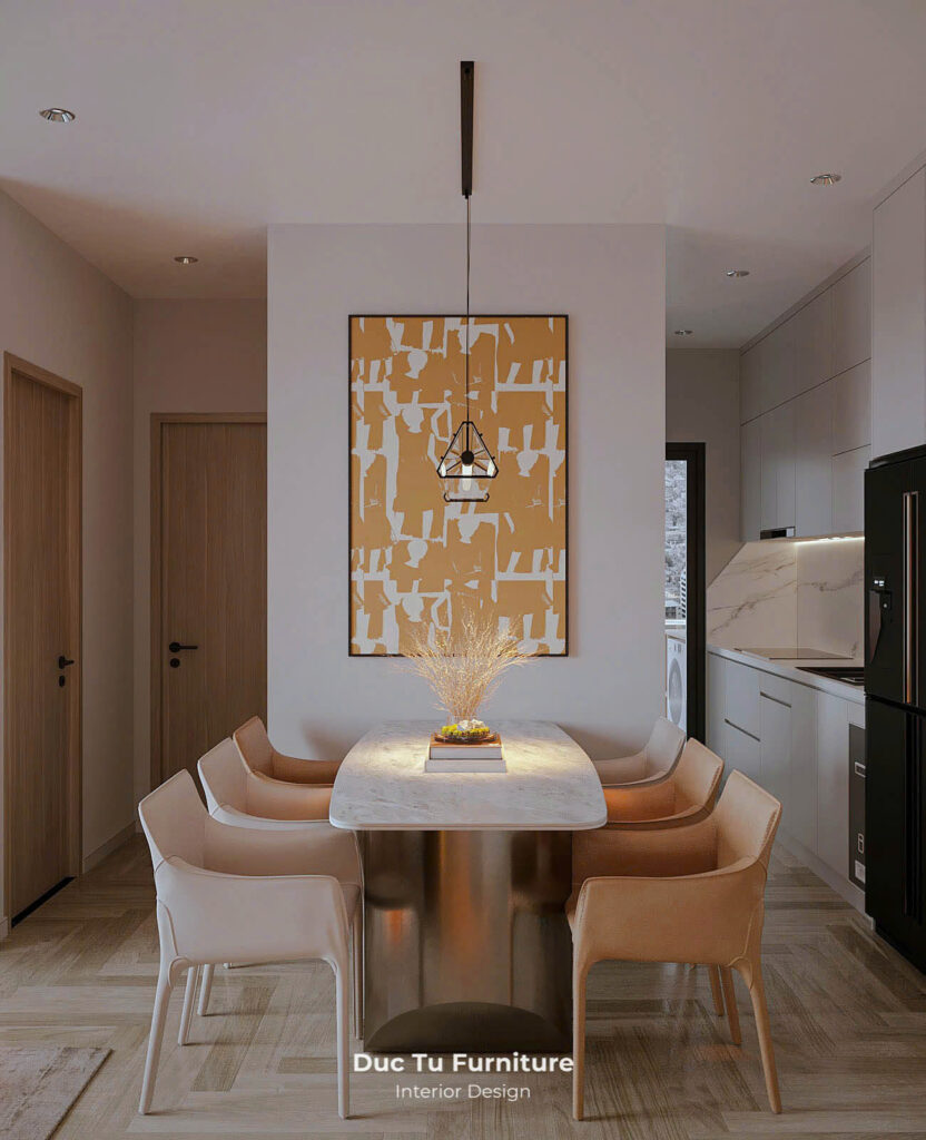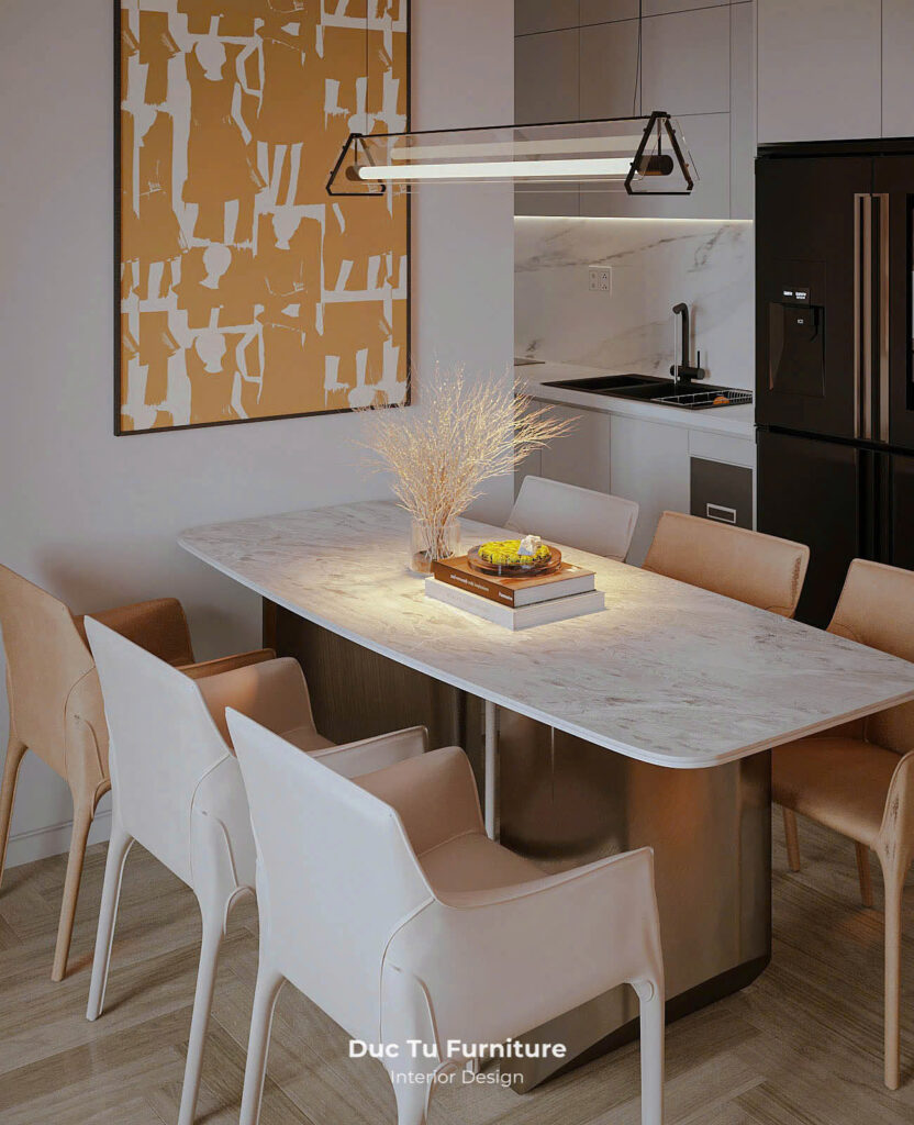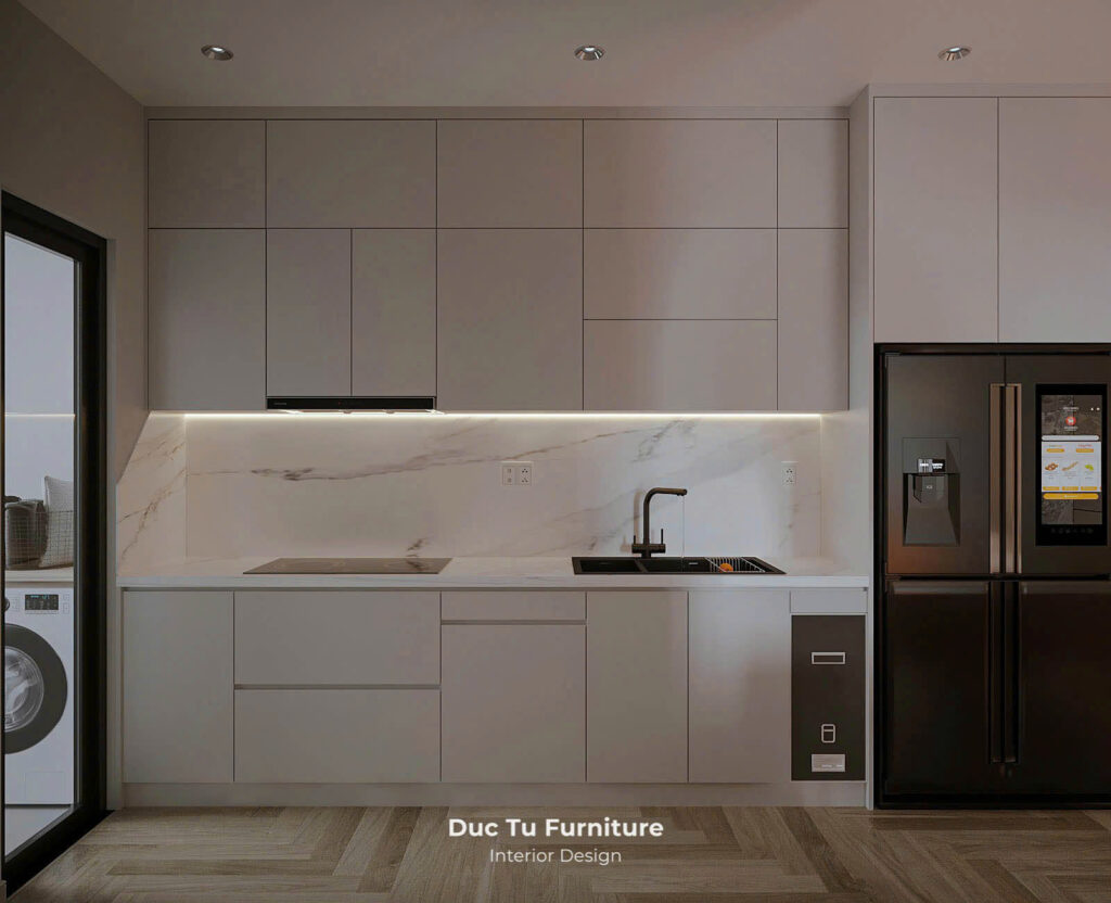 Tại đây, điểm nhấn từ sự tinh tế không đến từ những chi tiết trang trí phô trương. Mà lại nằm ở độ hoàn thiện sắc sảo của từng món đồ. Và sự tiện nghi thực tế mà các đồ dùng mang đến. Từ khe hở cánh tủ được căn chỉnh đồng đều. Đến những chi tiết ray trượt hay giá để chén bát cũng được kiểm tra kỹ lưỡng. Tất cả tạo nên một tổng thể tinh tế, nơi mà giá trị không nằm ở sự hào nhoáng. Mà là giá trị trải nghiệm sống trọn vẹn mỗi ngày. Chính sự chỉnh chu từng mối ghép, bề mặt chất liệu đã tạo nên không gian sống tinh tế.
