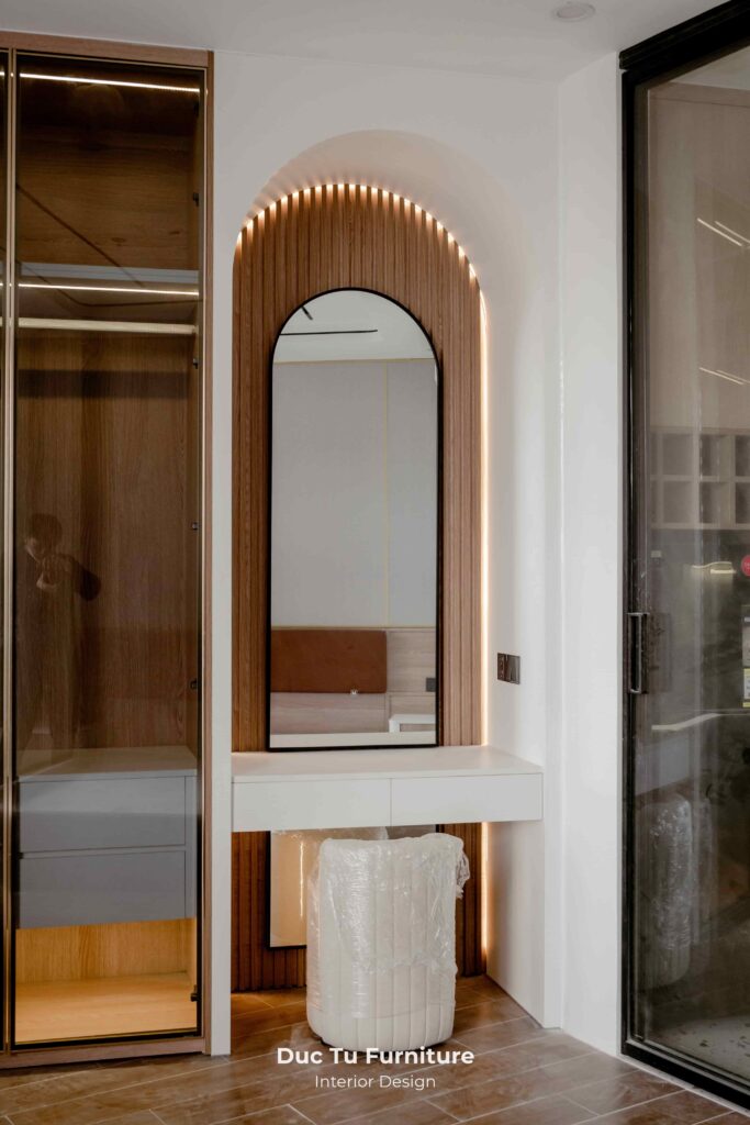 • Đối với không gian nghỉ ngơi cũng được trao chuốt tinh xảo qua những được bo góc của gương LED. Cùng bàn trang điểm treo được hoàn thiện tinh xảo. Mang đến cảm giác hiện đại và thoáng đãng. Đúng với tinh thần hiện đại và tiện nghi.