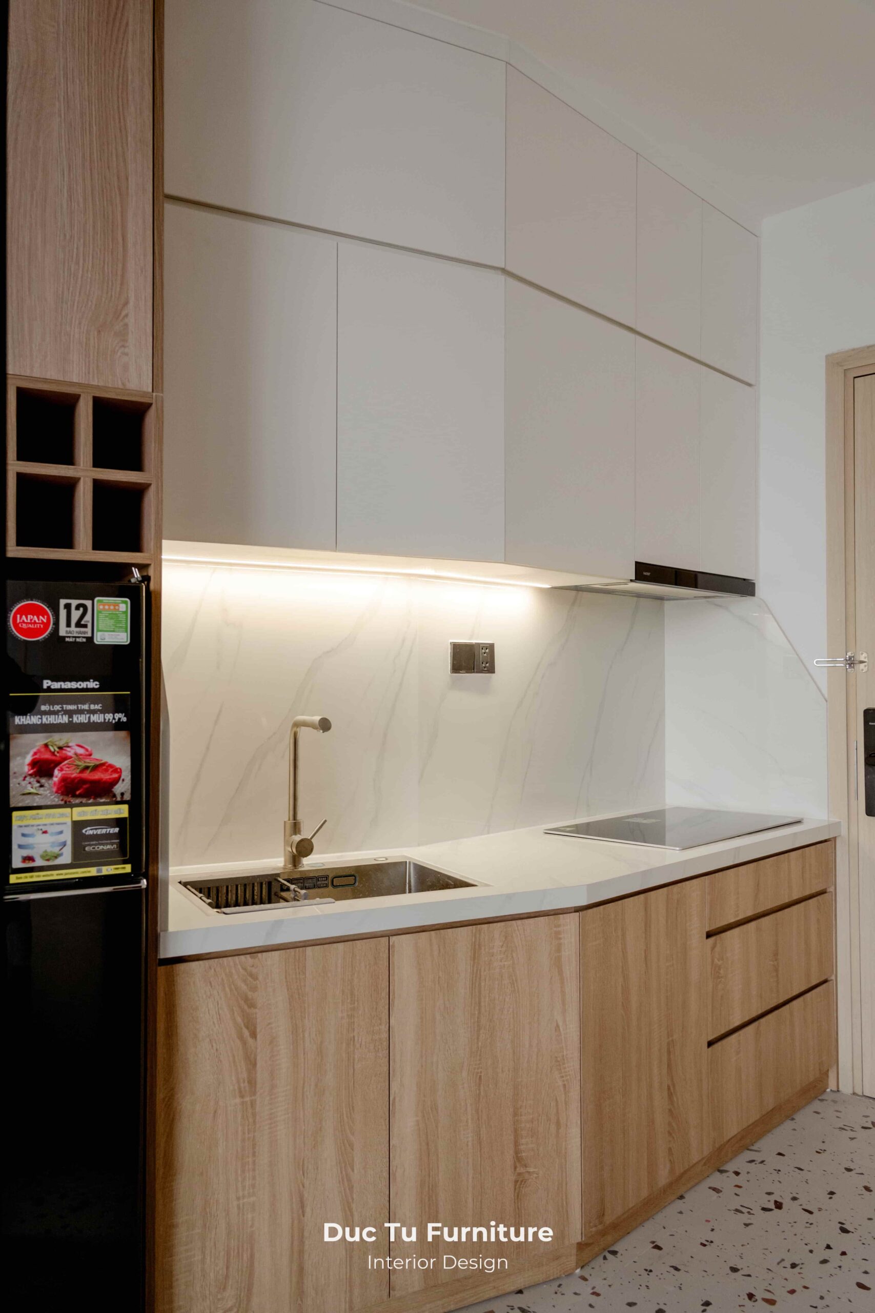 • Hệ thống đèn LED âm tủ được đi dây gọn gàng, khéo léo. Tạo nên ánh sáng ấm áp, giúp căn hộ trở nên dịu dàng và ấm cúng trong những đêm giao thừa sắp tới.