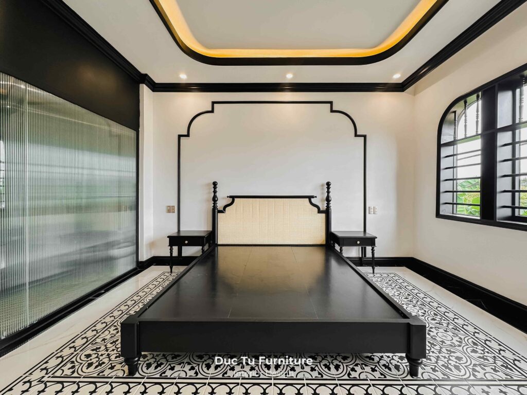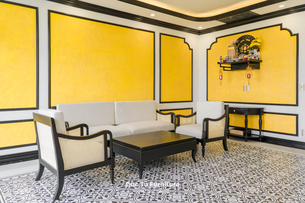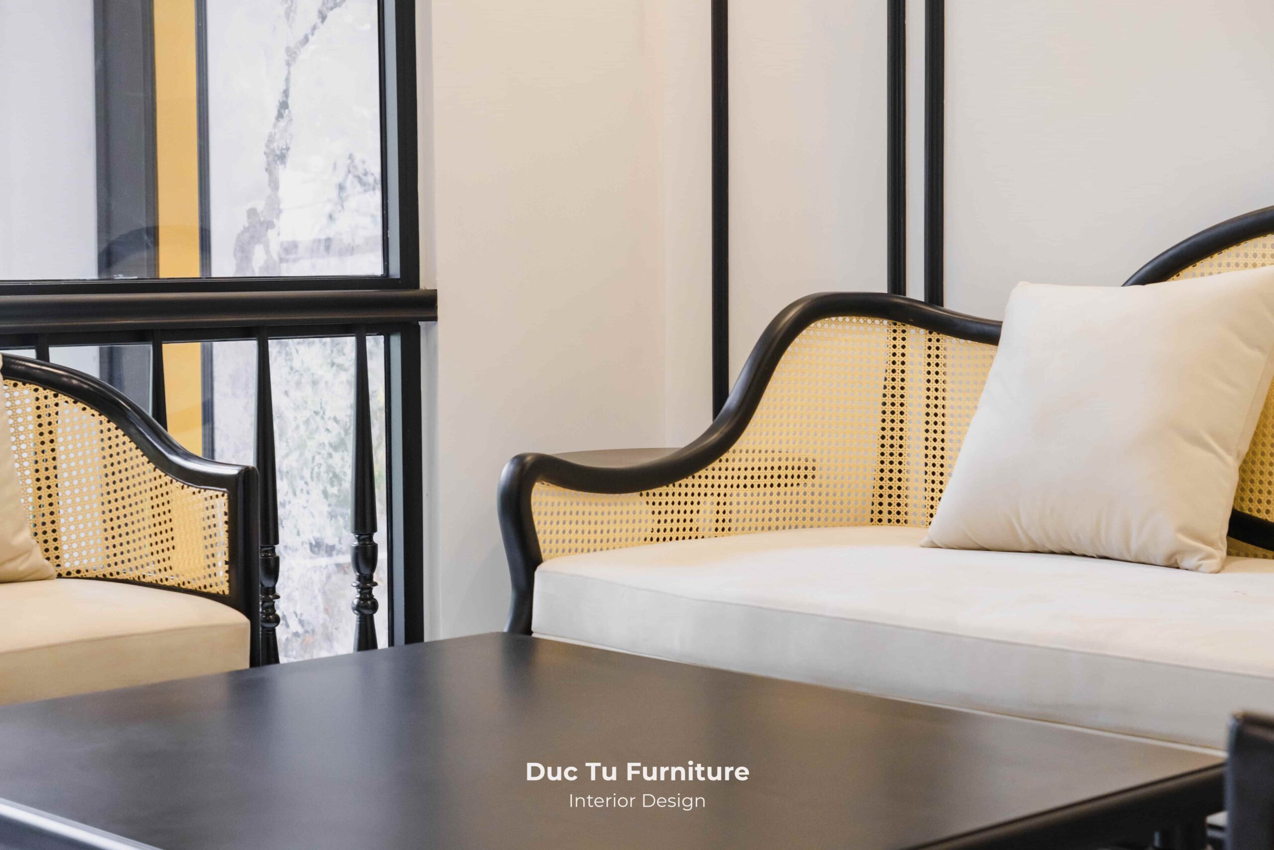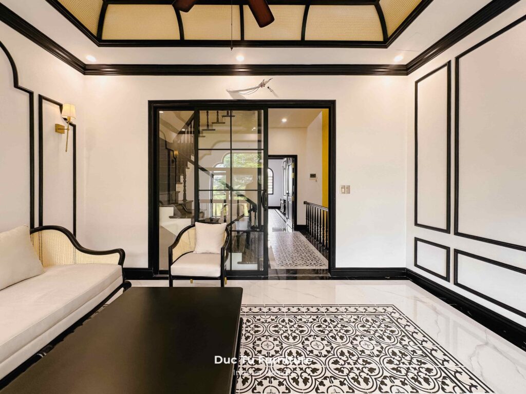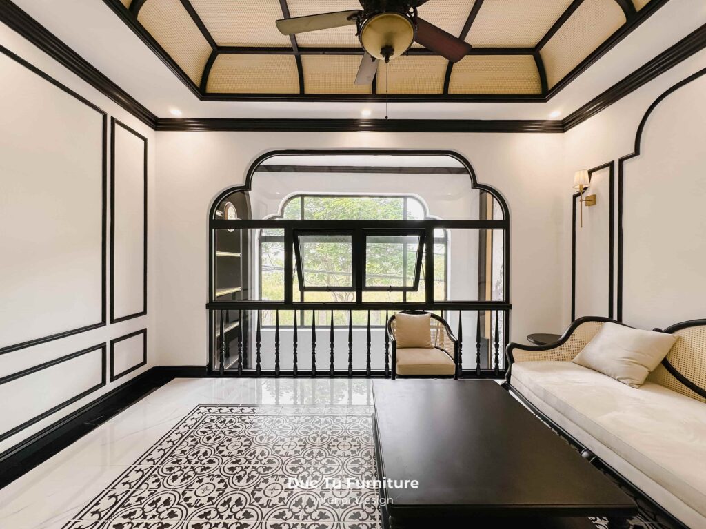 Để giải quyết bài toán: sử dụng phong cách Indochine nhưng không quá nặng nề. Nội thất Đức Tú tập trung vào sự cân bằng giữa nét hoài cổ và hơi thở hiện đại thông qua các yếu tố sau: