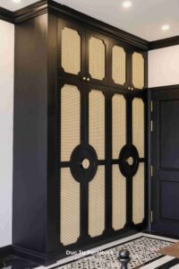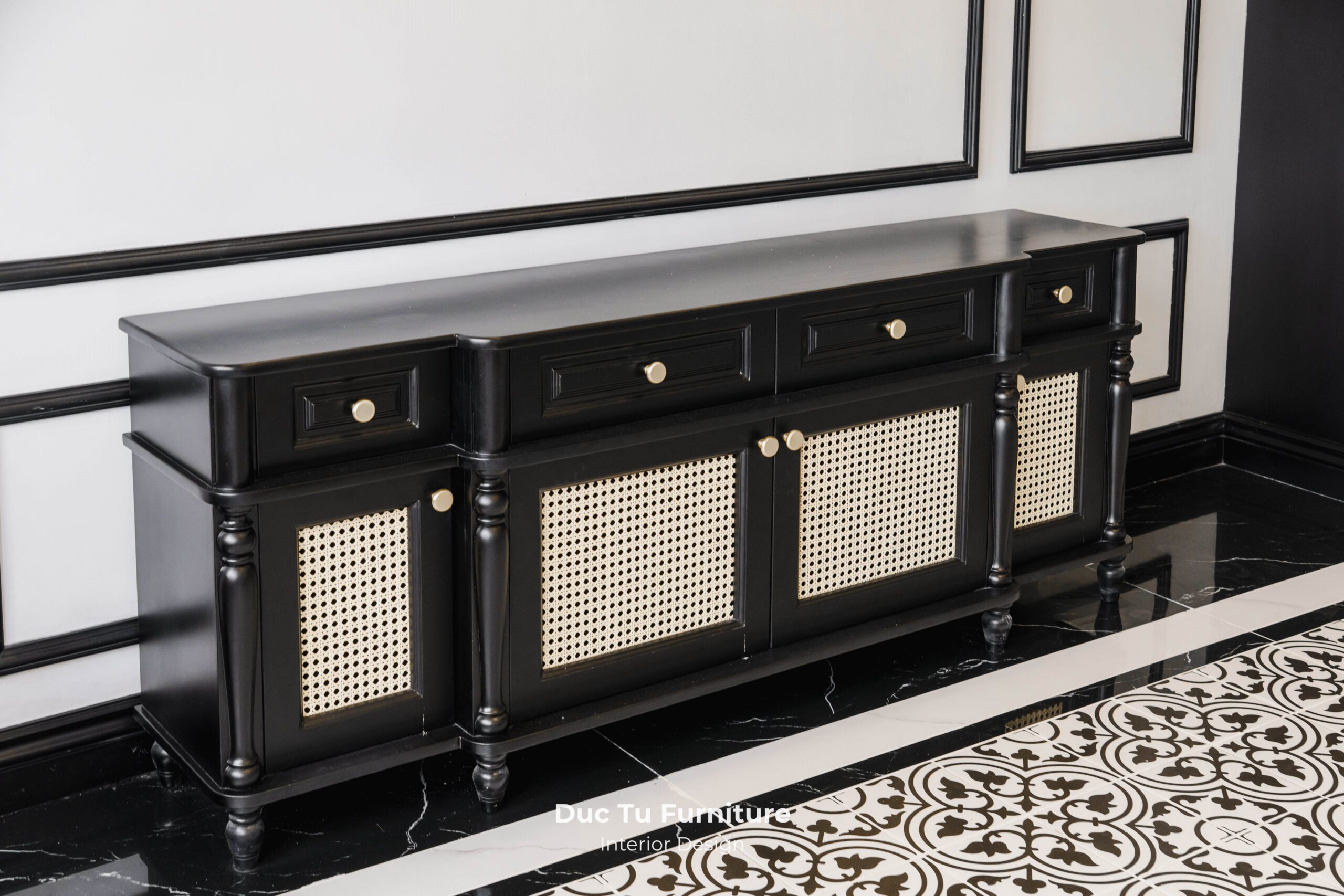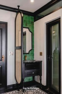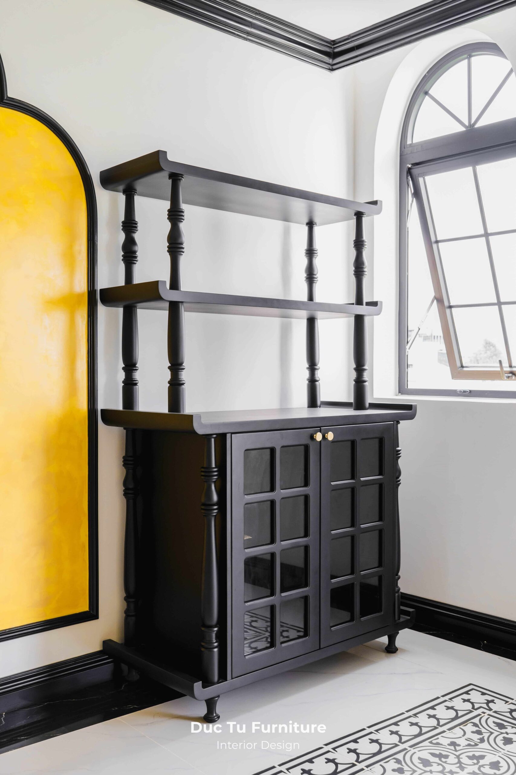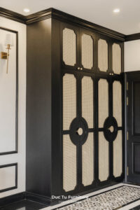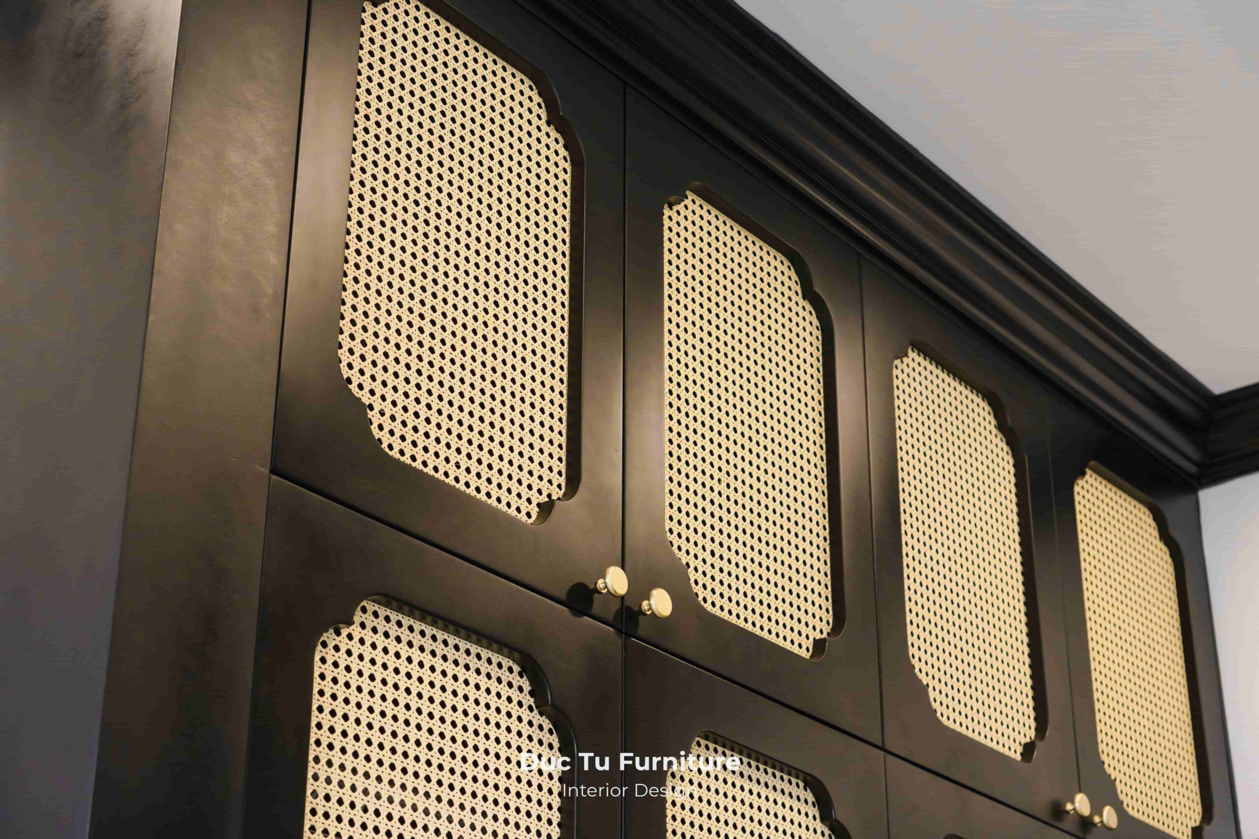 Bên cạnh đó, Đức Tú Furniture cũng chỉ sử dụng các điểm chạm đắt giá, thay cho những hoạ tiết phủ kín. Ví như: một mảng nền gạch bông rực rỡ tại sảnh đón, những chi tiết con tiện, mây tre đan điểm xuyết trên hệ tủ kệ. Cách xử lý này giúp giữ trọn tinh thần Indochine. Nhưng vẫn đảm bảo sự thông thoáng, năng động. Hoàn toàn phù hợp với nhịp sống của một ngôi nhà phố hiện đại.