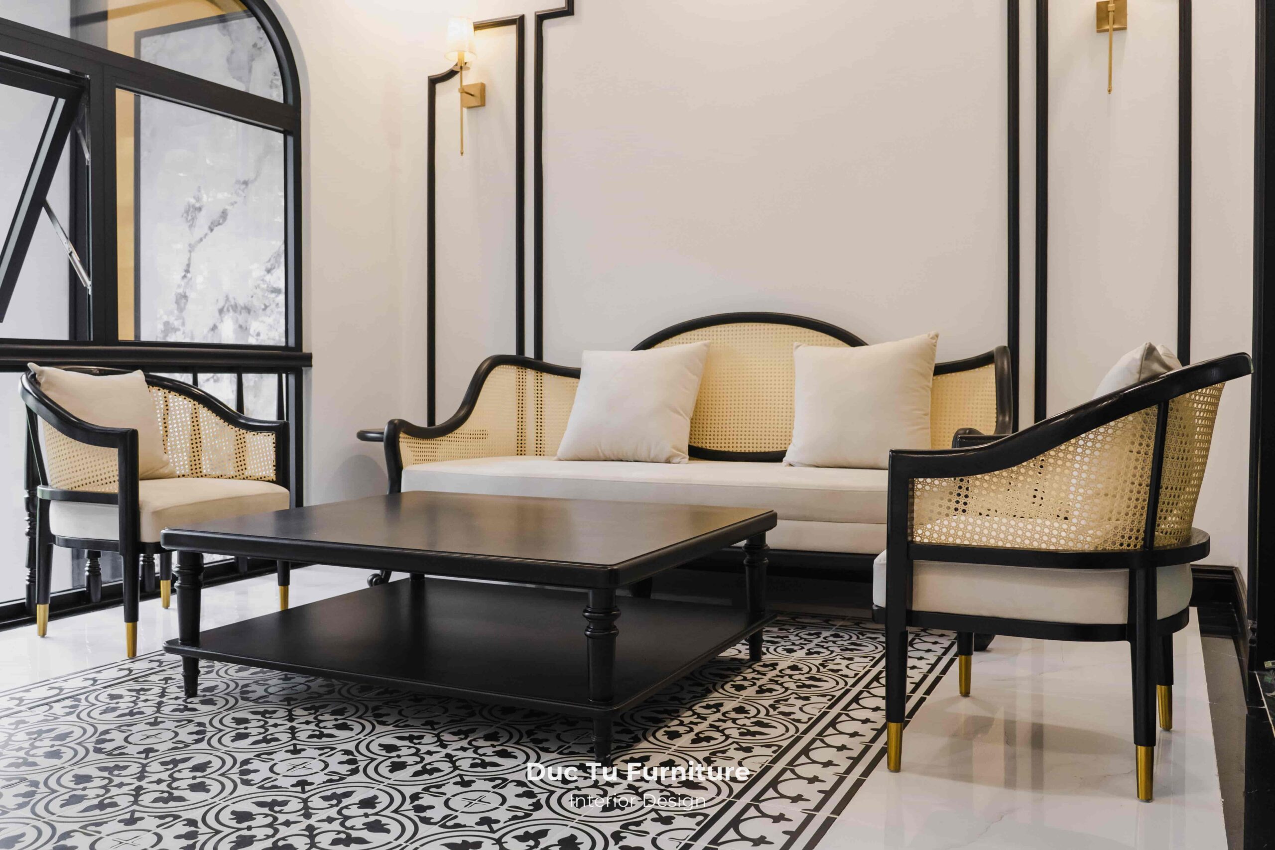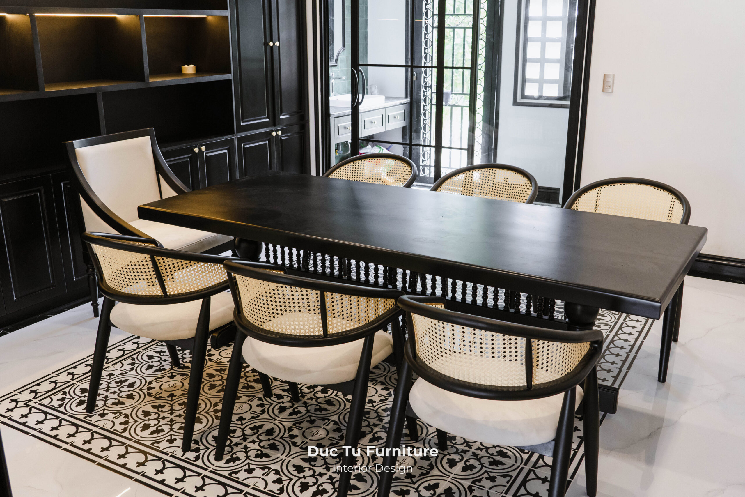 Để tái hiện đúng tinh thần Đông Dương trong không gian nhà phố. Đức Tú Furniture cũng ưu tiên sự giao thoa giữa các vật liệu truyền thống và hiện đại. Gỗ tự nhiên với tone màu trầm ấm đóng vai trò chủ đạo. Tạo nên vẻ đẹp sang trọng và bền vững. Điểm xuyết trên nền gỗ ấy chính là sự mềm mại của mây tre đan. Kết hợp thêm sự hoài cổ của những mảng gạch bông rực rỡ hay đá marble. Tất cả tạo nên một không gian đậm chất nghệ thuật. Vừa mộc mạc vừa gần gũi nhưng thanh tao.