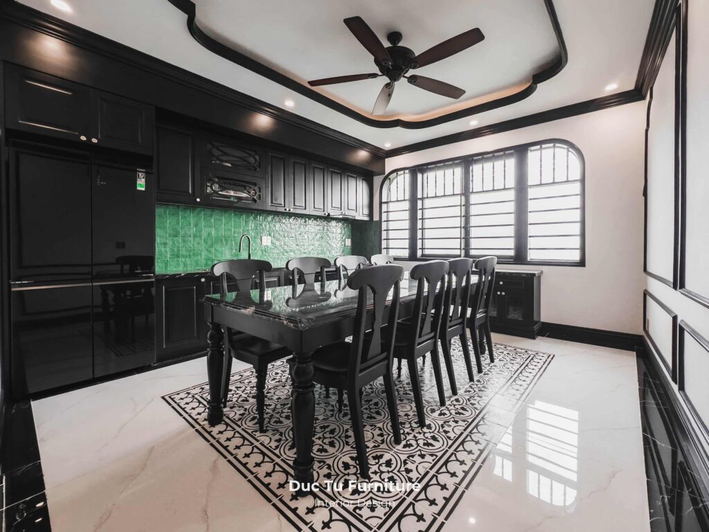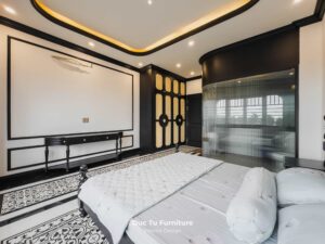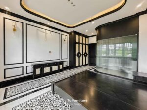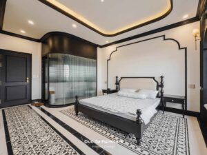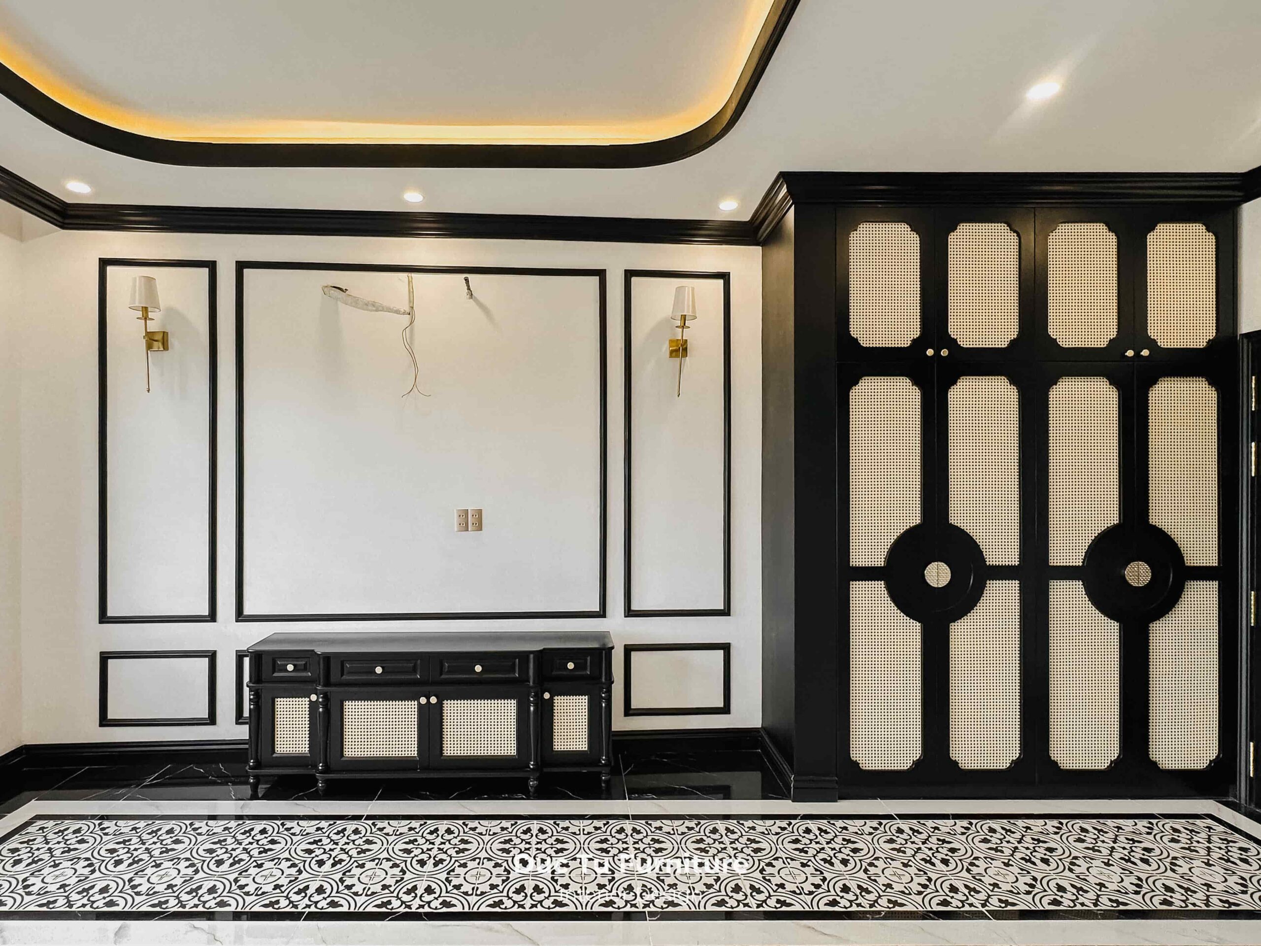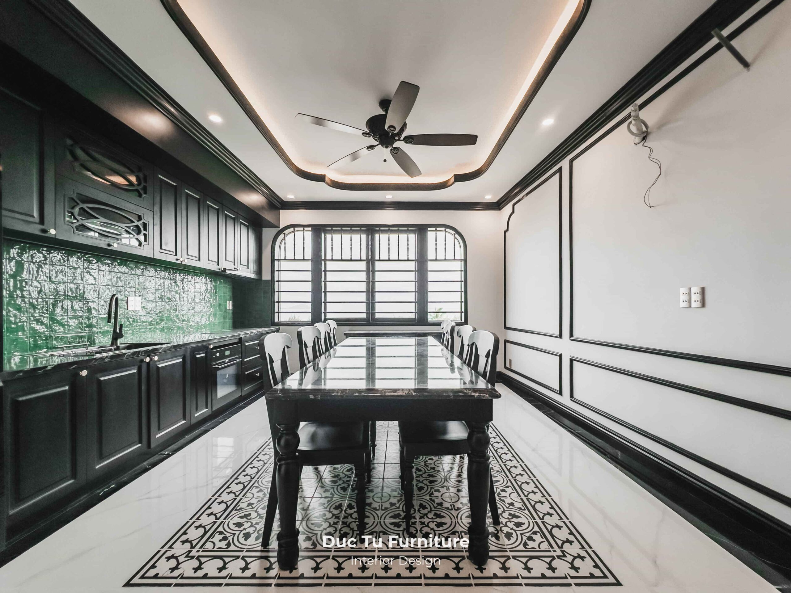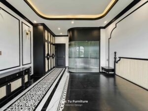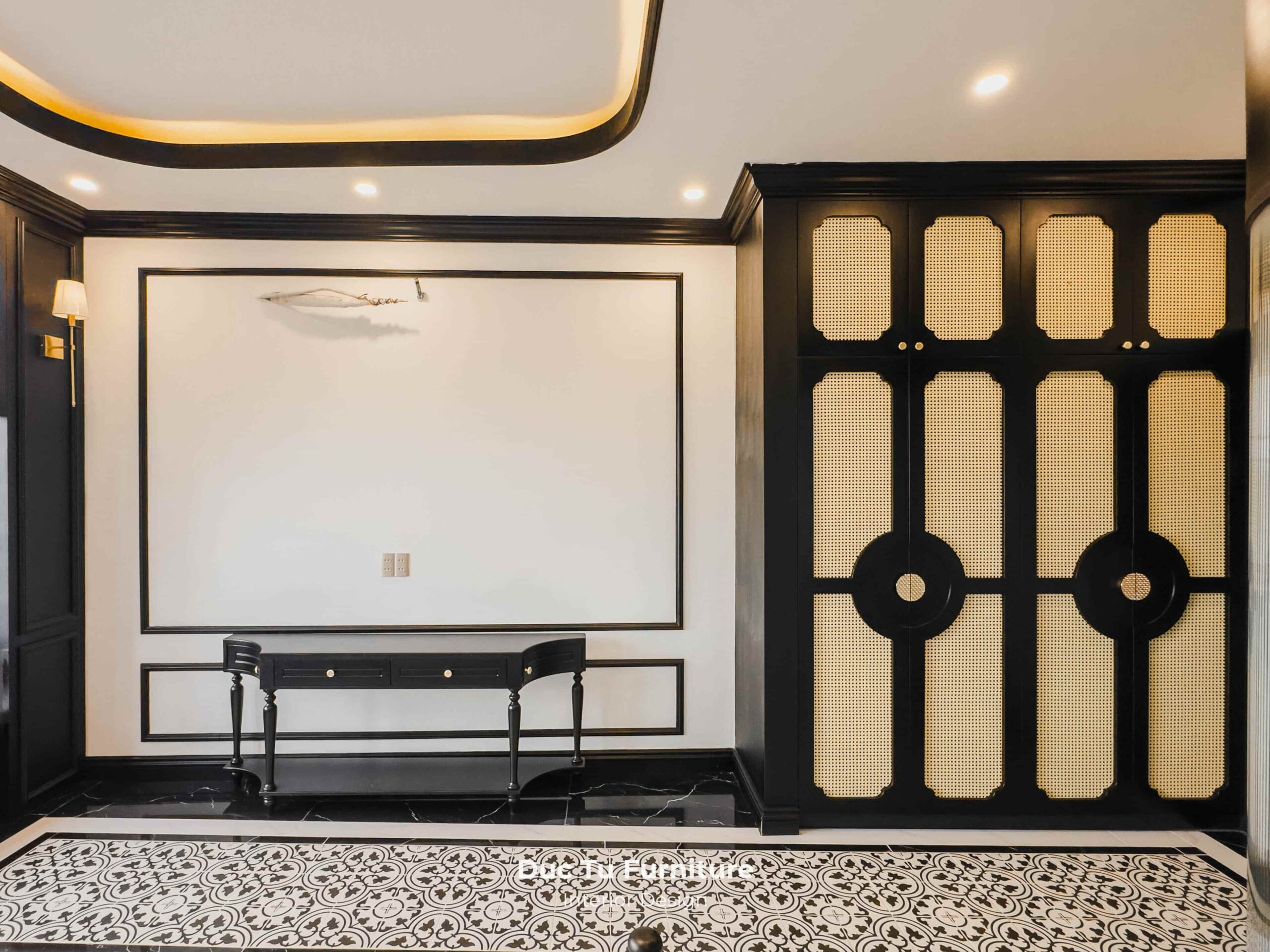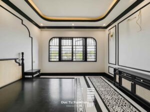 Sự tinh tế của phong cách Indochine không chỉ đến từ nội thất mà còn nằm ở cốt cách của không gian kiến trúc. Do đó, ngay từ giai đoạn phần thô, đội ngũ Đức Tú Furniture đã đồng hành cùng gia chủ để định hướng công năng và bố trí các hạng mục nội thất phù hợp. Việc tham gia từ sớm, đơn vị có thể kiểm soát chặt chẽ từng đường phào chỉ, vị trí ổ điện hay cốt nền gạch bông. Đảm bảo mọi chi tiết kỹ thuật đều hoàn thiện đúng với ý tưởng thiết kế ban đầu.