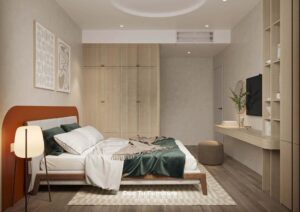 - Chất liệu nội thất chính: Gỗ công nghiệp MDF An Cường E1, WPB phủ PVC An Cường