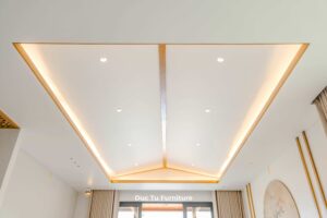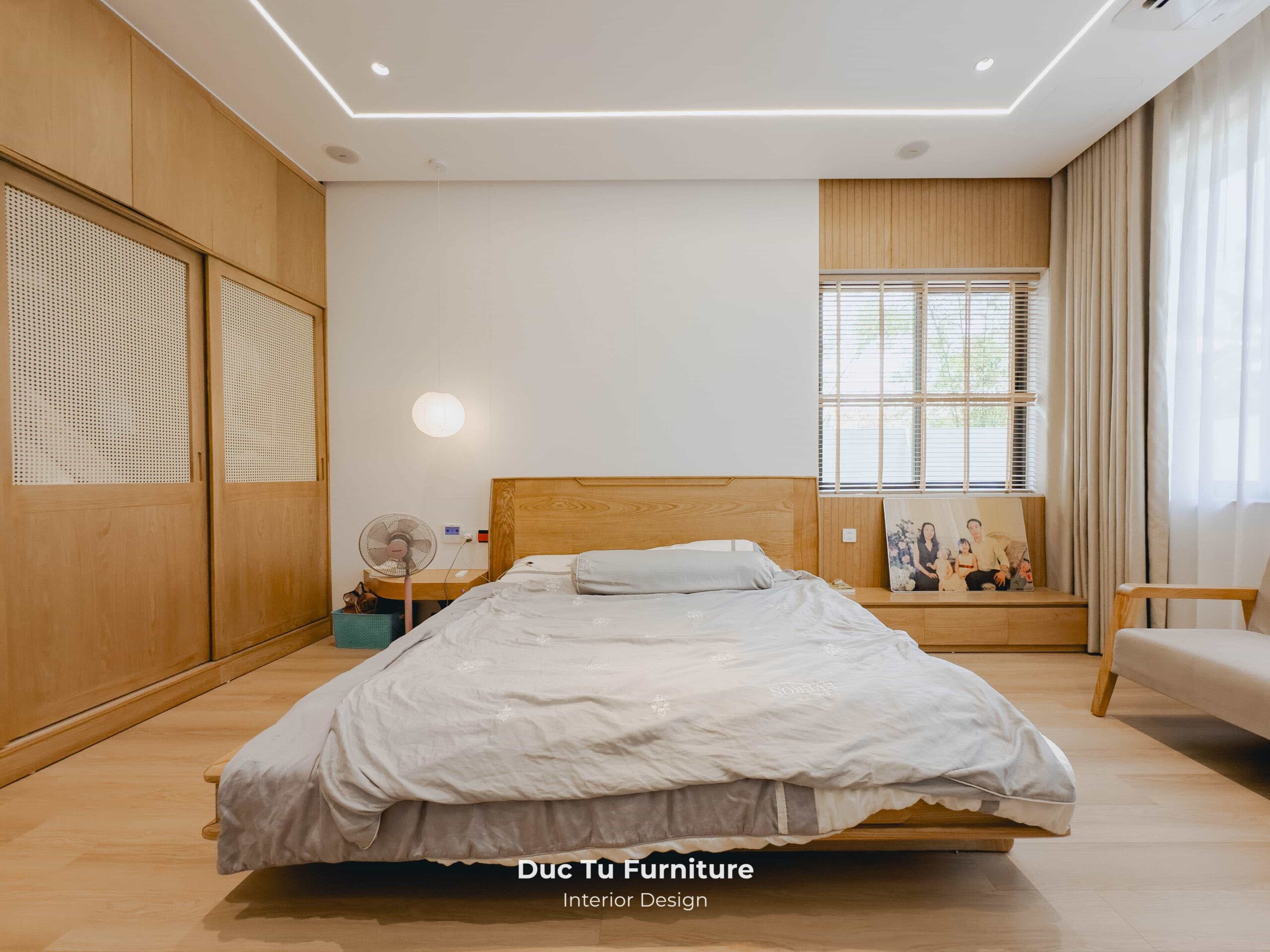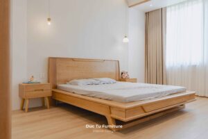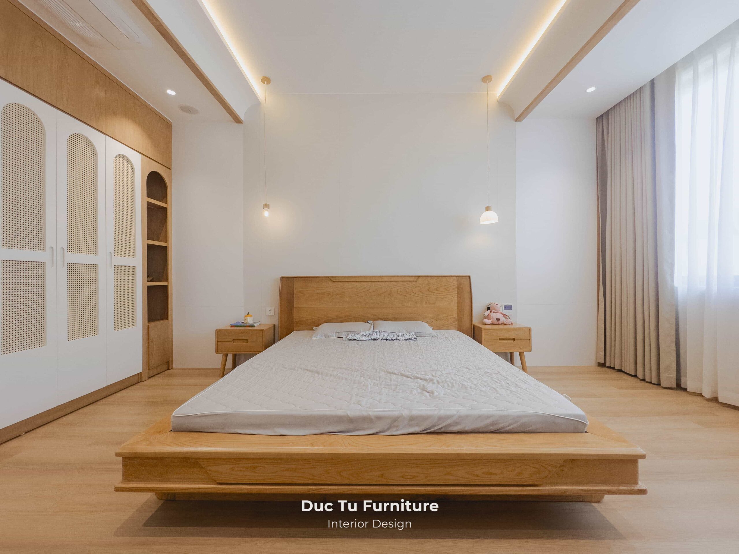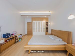 - Giải pháp: Đức Tú Furniture không cắt giảm vật liệu mà tập trung vào tỷ lệ mảng khối và sắc độ. Nội Thất Đức Tú tuyển chọn những kiện gỗ Sồi có tone màu sáng nhất. Kết hợp kỹ thuật bo góc mềm mại và tiết chế đường nét. Đặc biệt, việc tận dụng tối đa ánh sáng tự nhiên. Giúp gỗ Sồi không còn là vật liệu thô cứng. Mà trở thành chất liệu cảm xúc, vừa khớp với bản vẽ thiết kế. Mang lại sự thoáng đãng, sang trọng đúng nghĩa cho căn Villa.