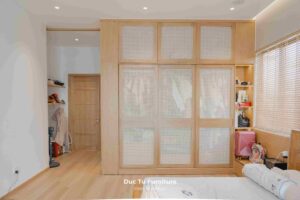 Sự hài lòng về chất lượng không chỉ đến từ vẻ thẩm mỹ bên ngoài. Mà còn là trải nghiệm sử dụng thực tế hằng ngày. Như: hệ thống phụ kiện, bản lề, ray kéo vận hành êm ái, trơn tru và không hề xuống cấp. Đây là minh chứng rõ ràng nhất cho năng lực thi công và sự thấu hiểu nhu cầu khách hàng mà Đức Tú Furniture luôn theo đuổi.